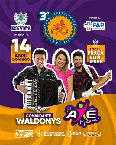 Além da destinação de 100% dos recursos arrecadados com a terceira edição do Pedal Beneficente para o Hospital da FAP, a Prefeitura de Boa Vista promove neste final de semana o recolhimento de doações para a unidade de saúde, que é referência no atendimento de pacientes com câncer. O pedal acontece neste domingo, 14, com concentração na Praça Bom Jesus e largada às 7h30.